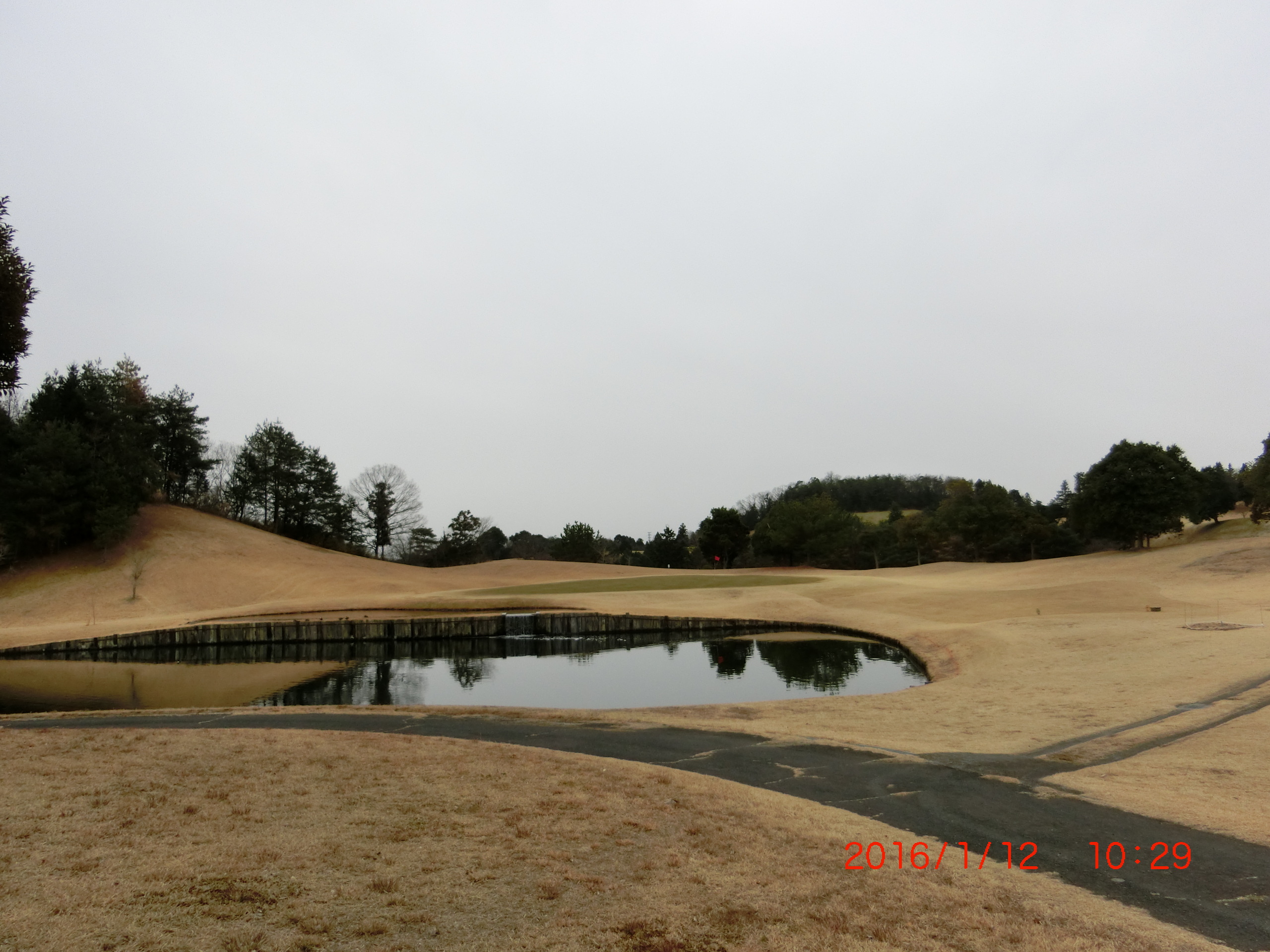 4番フェアウエ-左にある空の池。