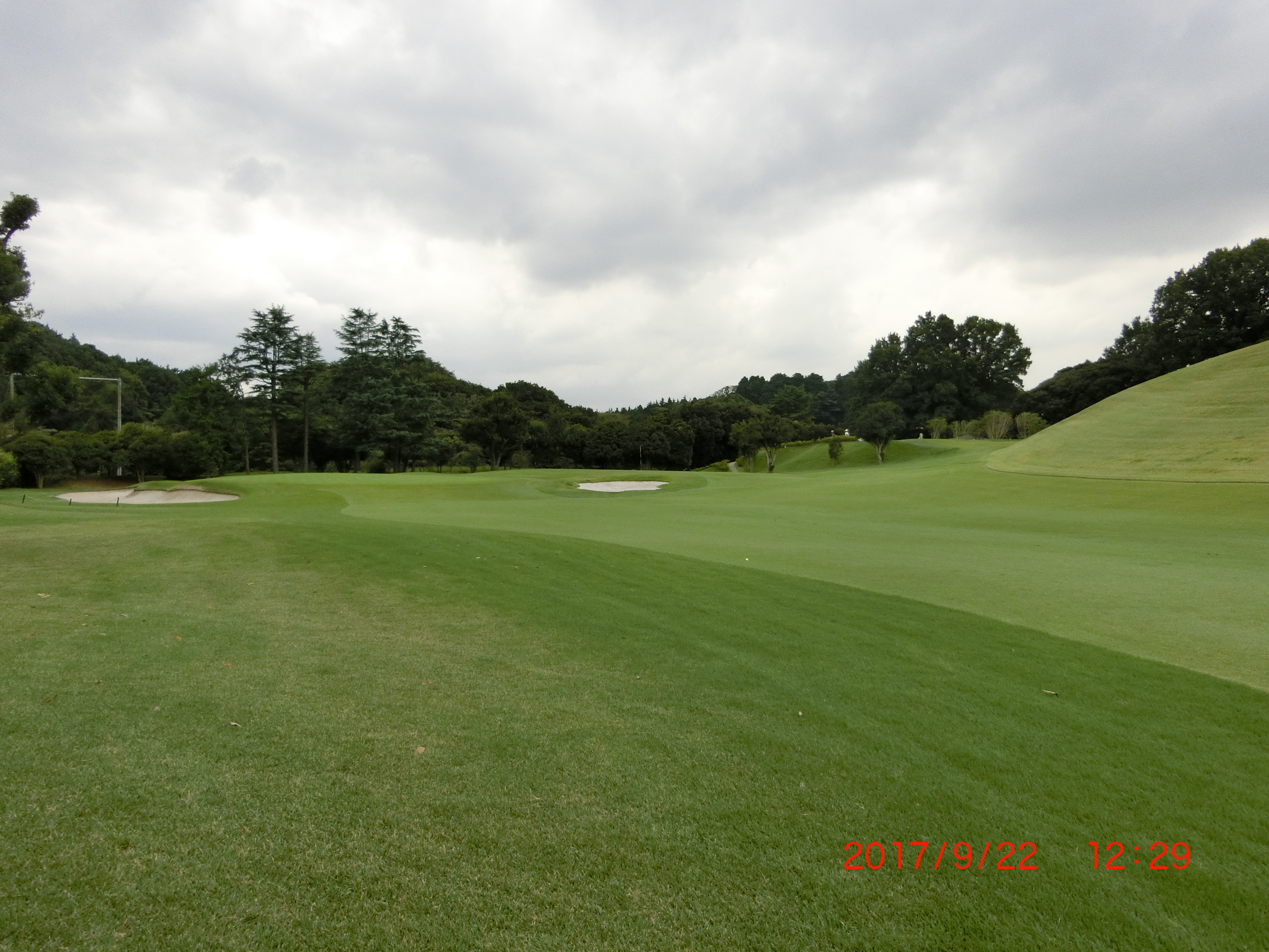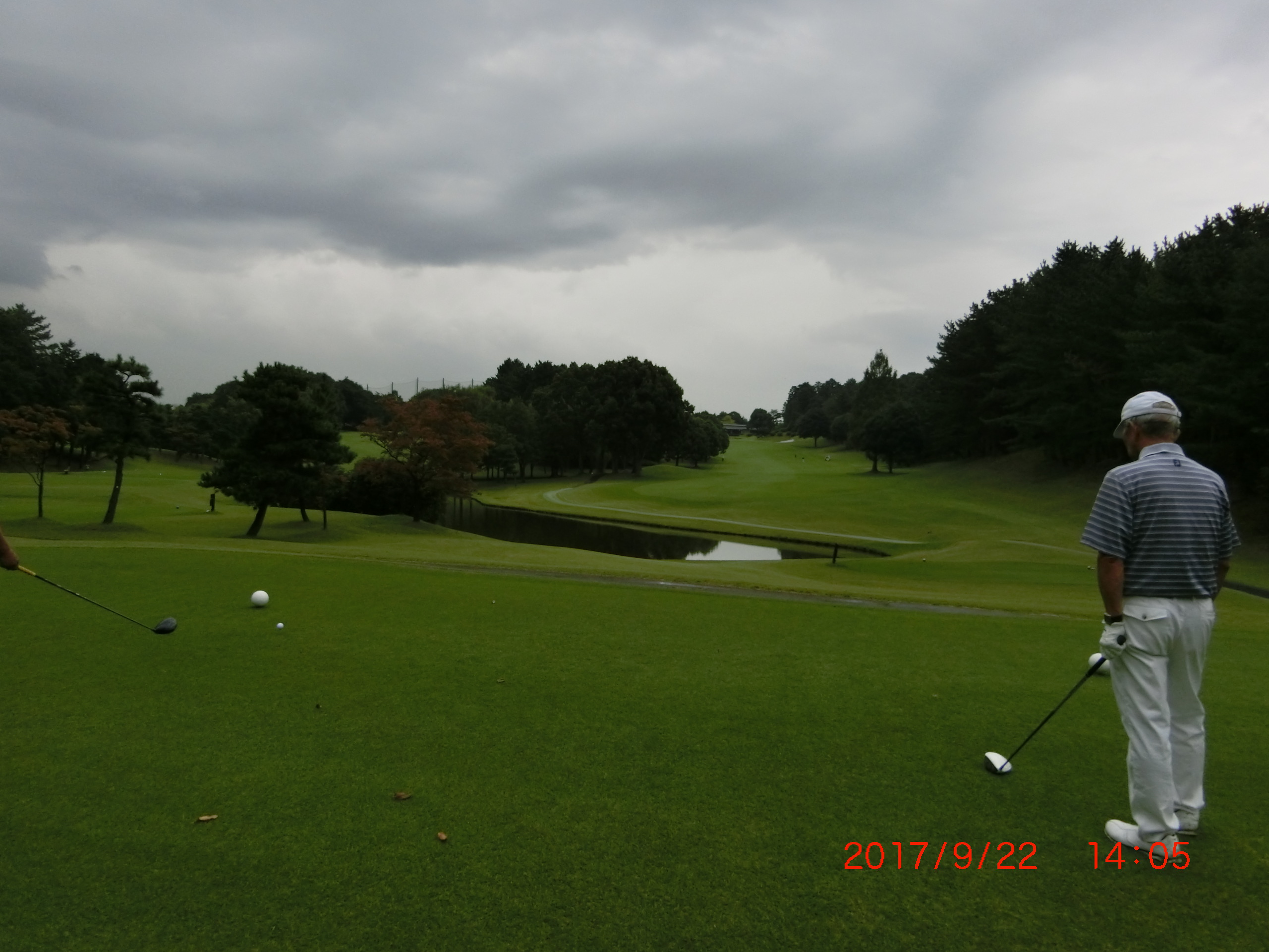 13番グリ-ンから振り返る 空が暗くなる!