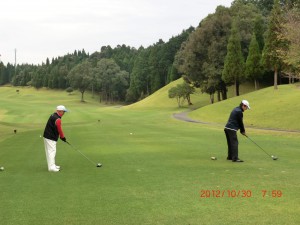 ゴルフ学会会長と実行委員長による始球式