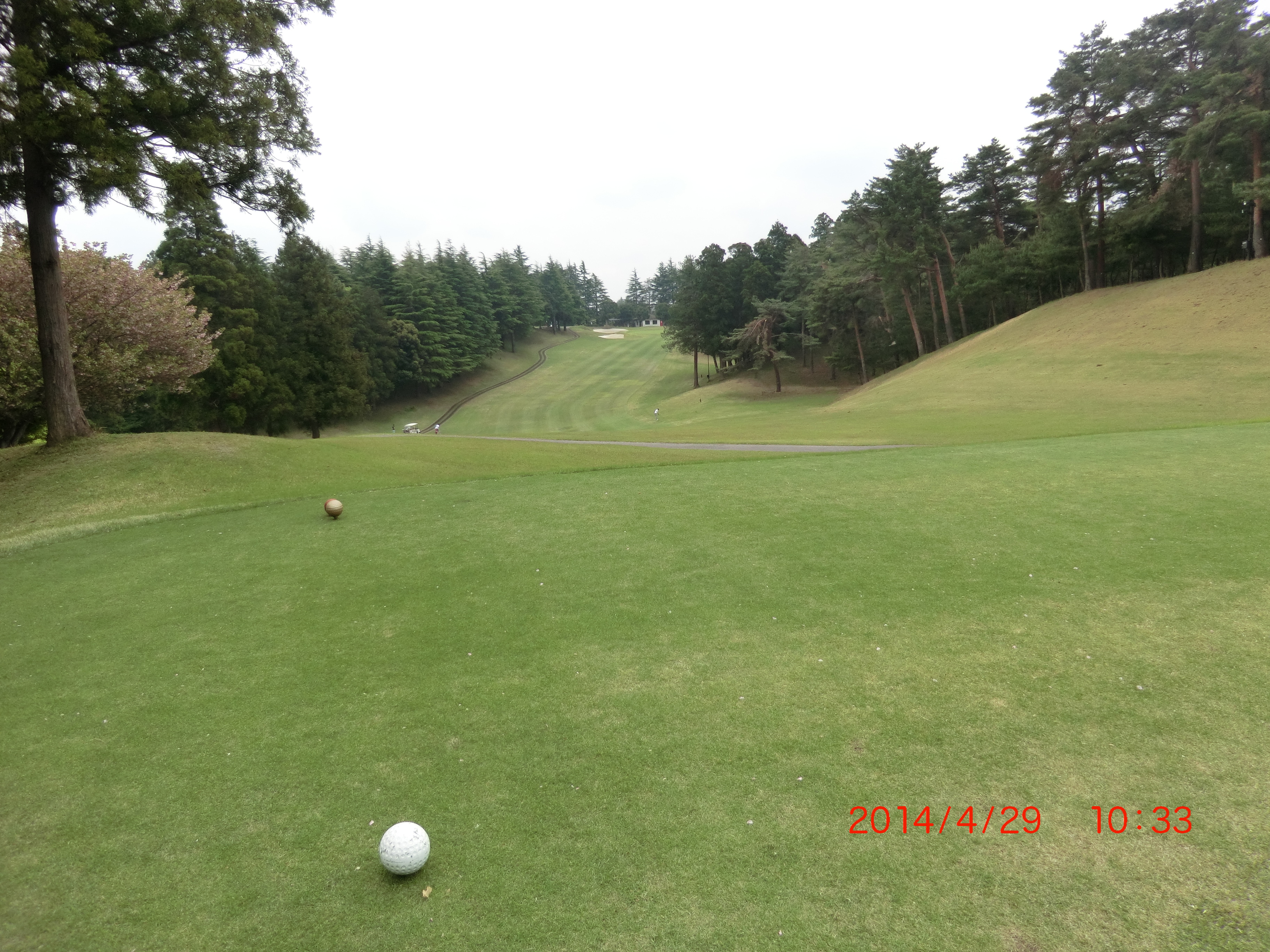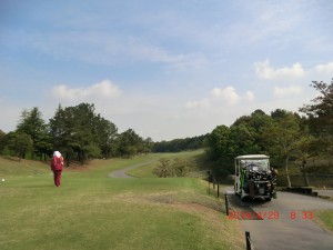 今日は、キャディ-付きで西コ-スからスタ-トしました。 グリ-ンの刈高3.8mm、スティンプメーター10.7ftと速いグリ-ンです。 フエアウエ-13mm、ラフ50mmに刈ってあるようです。 Bグリ-ン使用